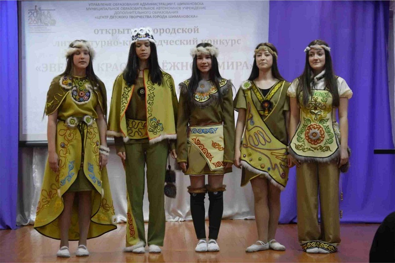 Под таким названием 23 апреля в Центре детского творчества прошел городской литературно-краеведческий конкурс, посвящённый Году единства народов России. Участники с первых минут погрузили всех в «Мир эвенкийской культуры». Девочки команды школы № 4 представили коллекцию лаборатории моды «ШКЕТОВ» - «Девушка-восход». Они сами придумали творческое представление. Были очень нежные, хрупкие, как природа в лучах восходящего солнца и стали украшением мероприятия.