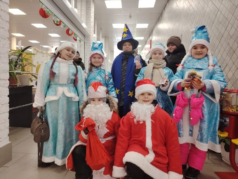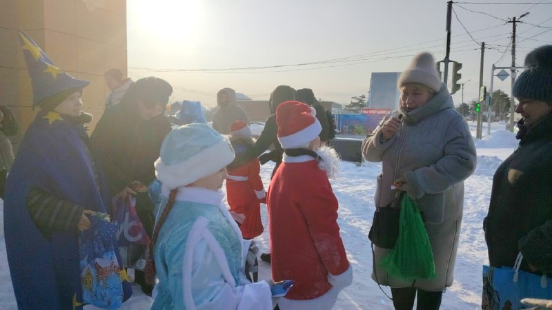 В ярких костюмах Дедов Морозов, Снегурочек и звездочета наши юные волшебники дарили улыбки и хорошее настроение всем, кто встречался им на пути. Дети пели праздничные песни, дарили открытки и сладкие угощения, создавая атмосферу настоящего чуда!