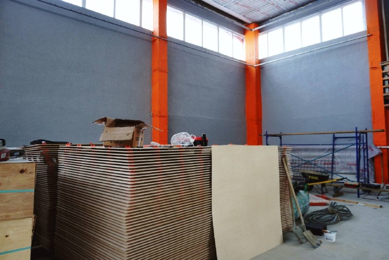 В настоящее время выполняется укладка фанеры в два слоя под будущие полы, завершается покраска стен, проводится установка освещения и зашивка потолка.