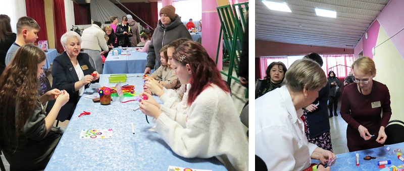 Все желающие смогли не только полюбоваться рукодельными шедеврами, но и самим попробовать себя в роли художника и создать небольшой подарок (весенний букетик) своими руками. Мастер-классы провели опытные мастера, поделившись секретами мастерства и подарив участницам массу положительных эмоций.