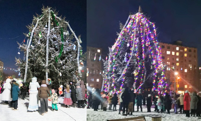 Весело и сказочно красиво прошли церемонии зажжения огней на главной елке города – на площади кинотеатра «Спутник» и в Сказочном городке.