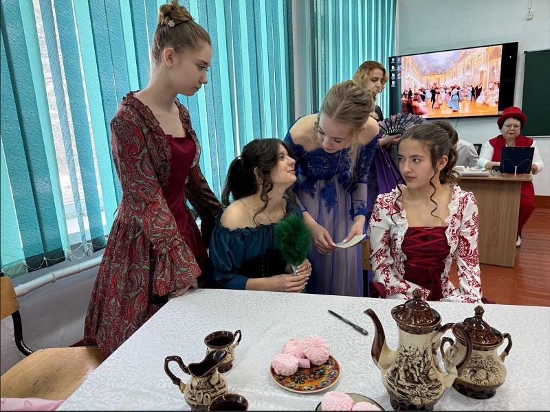 Во время сцены № 3 погрузились во времена Пушкина, учились наносить грим, брали и давали интервью, монтировали видео.
