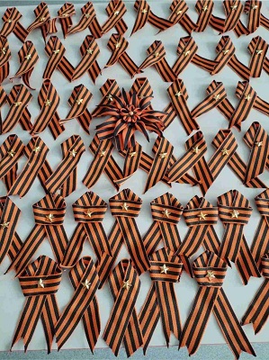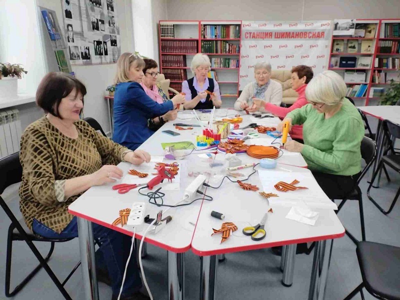 Более 70 георгиевских брошей изготовили «серебряные» волонтёры РЖД и рукодельницы клуба любителей книг и рукоделия Шимановского отделения Союза пенсионеров России на празднование Дня Победы.
