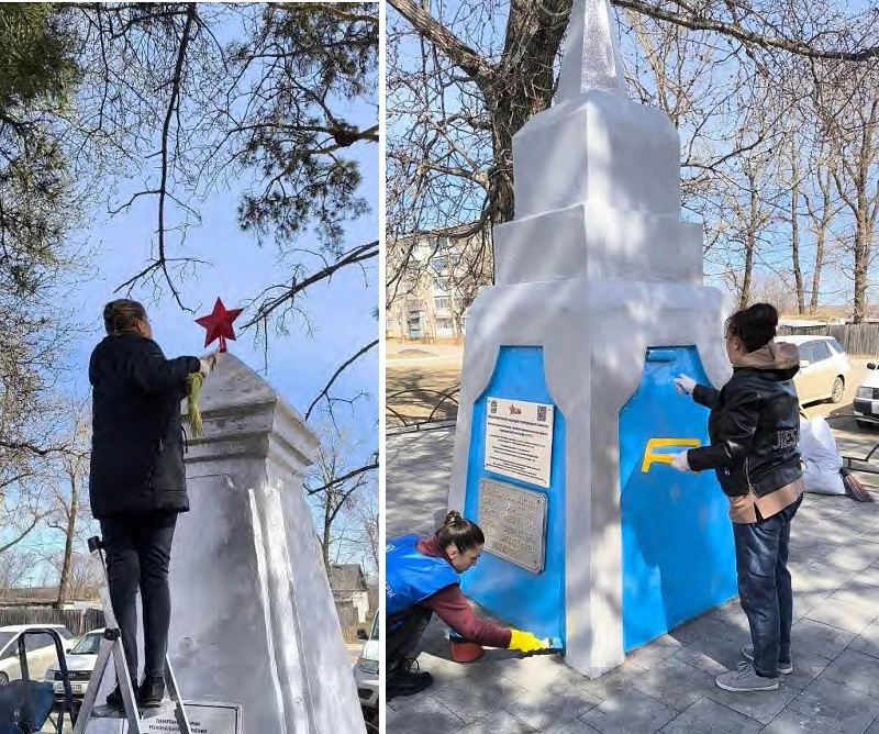 В рамках этого дня сотрудники Дома культуры и спорта привели в порядок памятники в районе железнодорожного вокзала.