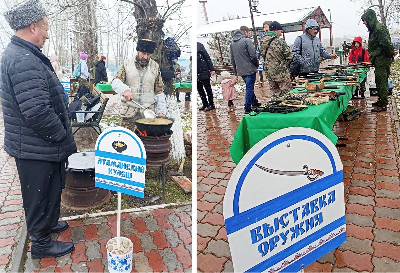 Также все желающие смогли продегустировать квашеную капусту, согреться горячим чаем с пирожками, отведать атаманский кулеш.