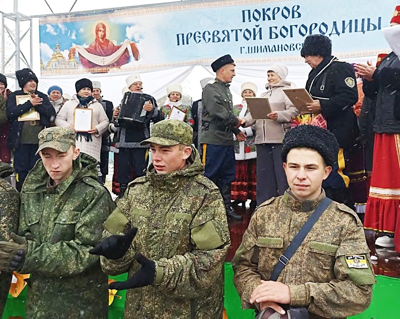 Открытый фестиваль казачьей песенной культуры «Покров» с участием казачьих коллективов Амурской области прошел в Шимановске. Организаторы фестиваля – Шимановское городское казачье общество «Кумарский Станичный округ», Атаман третьей Кумарской сотни хорунжий Андрей Алексеевич Верняев.